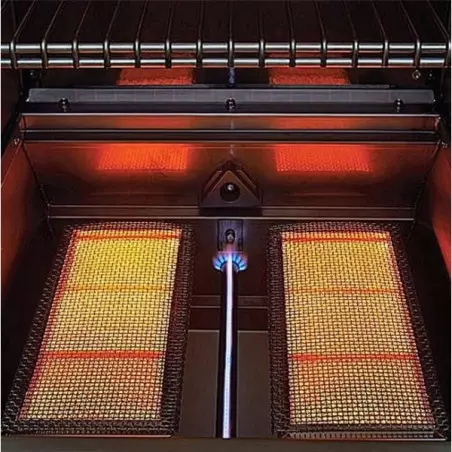 - 4 brûleurs principaux + 2 brûleur infrarouges arrière + 1 brûleur de fumage + 2 brûleurs infrarouges (partie de droite)
