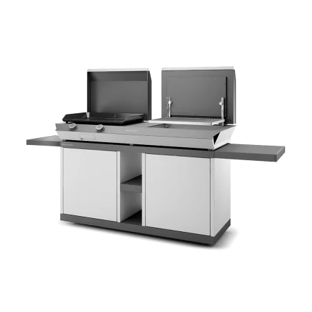La table roulante est équipée d’un grand plateau et de deux roues qui permettent de la déplacer facilement.