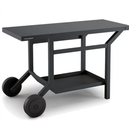 Table roulante résistante aux intempéries. Plateforme de rangement en dessous de la table, elle permet également de stocker une bouteille de gaz.